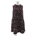 アニエスベー agnes b. ワンピース ラウンドネック ノースリーブ ひざ丈 花柄 リボン 36 S 黒 ブラック グレー /HO13 レディース