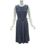 未使用 アニエスベー ワンピース agnes.b QB96-JCP2 Aライン ラウンドネック ノースリーブ レトロ レーヨン ネイビー ホワイト Lサイズ