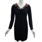 未使用 アニエスベー ワンピース agnes.b レディース タイト Iライン 八分袖 フリル衿 リボン ブラック フラワー 花 黒 Mサイズ 27074