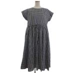 トゥービーバイアニエスベー To b. by agnes b. 美品 ギンガムチェック ロング ドレス ワンピース フレンチスリーブ 5730WU23 黒 ブラック