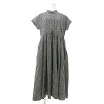 トゥービーバイアニエスベー To b. by agnes b. フレアワンピース ミモレ ロング 半袖 フレンチスリーブ レギュラーカラー 花柄 36 黒