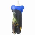 アニエスベー agnes b. フォトプリント ワンピース フレンチスリーブ 半袖 膝丈 ストレッチ 2 マルチカラー 0313 ■GY09 レディース