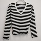 agnes b. Vネック ボーダー 長袖Tシャツ カットソー ロンT ホワイト ブラック アニエスベー 4-0907M 243080