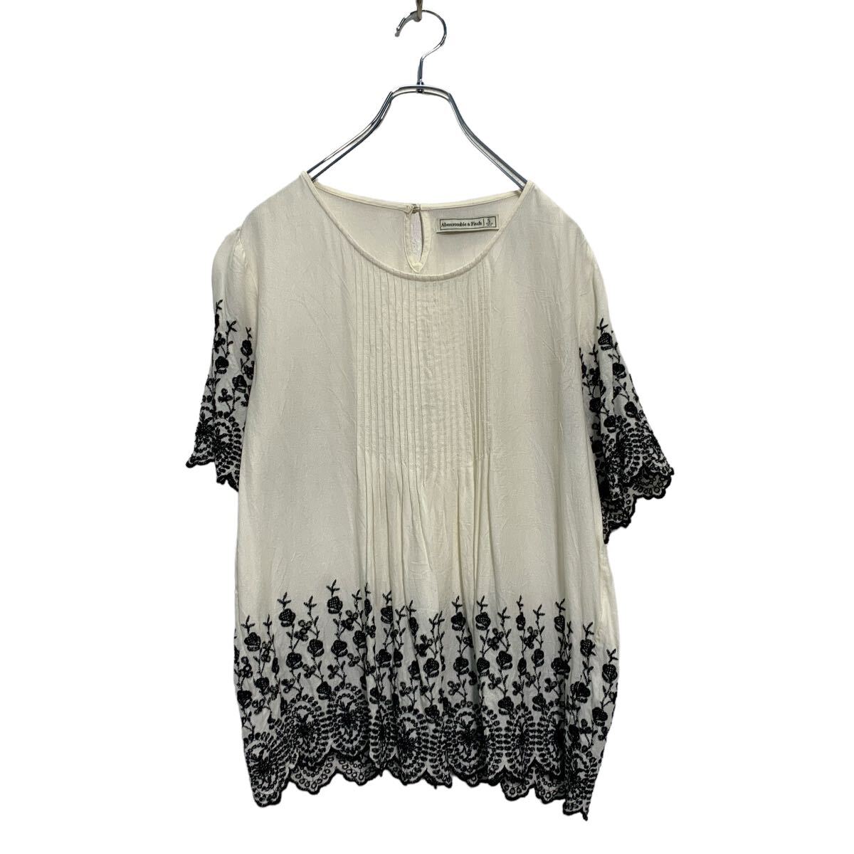 【中古】【古着】 Abercrombie&Fitch 半袖 プリーツシャツ S レディース ホワイト アバクロンビーアンドフィッチ 花柄刺繍 古着卸 アメリカ仕入 a605-5971