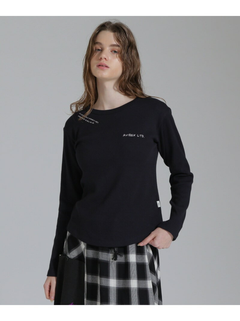 【SALE/30%OFF】DOODLE PRINT HONEYCOMB WAFFLE LONG SLEEVE T-SHIRT/ダブルプリントハニカムワッフル AVIREX アヴィレックス トップス カットソー・Tシャツ ホワイト ネイビー グレー【RBA_E】【送料無料】[Rakuten Fashion]