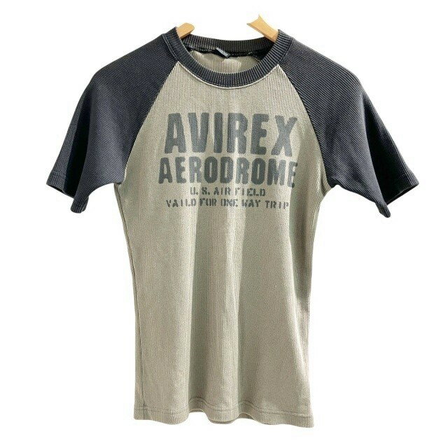 【中古】アヴィレックス AVIREX サーマル Tシャツ カットソー ロゴプリント カーキ M ■MET1 メンズ 【ベクトル 古着】 250806