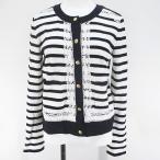 アルベルタ フェレッティ ALBERTA FERRETTI ボーダー柄 長袖 コットン ニット カーディガン 38 紺系 ネイビー レース 切替 ボタン イタリア