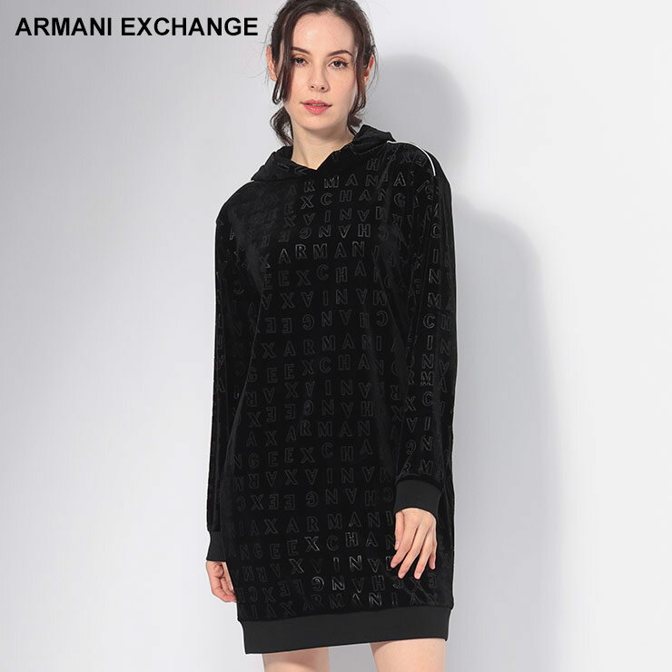 アルマーニ エクスチェンジ ARMANI EXCHANGE エンボスロゴ フーデッド ベルベット ワンピース AEL6DYA89YJLGZ ブランド レディース トップス ワンピース ロングパーカー プルアーバー 総柄