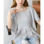 【SALE/50%OFF】mysty woman リボンカーデタンクアンサンブル ミスティウーマン トップス カットソー・Tシャツ カーキグリーン グレー