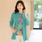 サマー ロングカーディガン アンサンブル グリーン カーディガン 長袖 カットソー 七分袖 コットン レディース 婦人服 ミセス シニア 女性 緑 黄緑 花柄 無地 透け感 シースルー シアー シニアファッション 40代 50代 60代 70代 80代 母の日 お母さん 春夏 pos nss p25823