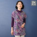 アンサンブル レディース おしゃれ 秋冬 ミセス シニア ファッション 40代 50代 60代 70代 80代 プリント切替えカットソーベストアンサンブル
