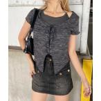 tシャツ レースアップアンサンブル風ショート丈トップス レディース