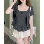 アンサンブル ビスチェ&スリットロンTセット(chiica original) / 2点セット セットアイテム ロングスリーブ キャミソール 無地