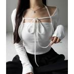 トップス レディース アンサンブル キャミソール リブカットソー インナー リボン ショート丈 クロップド コンパクト レイヤード 2024春夏[mb]