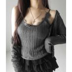 tシャツ 「Good Riddance」テレコ リブ アンサンブル キャミソール ドットスナップカーディガン レディース
