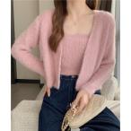 テディショップ Teddyshop レディース アンサンブルリブシャギーニットカーディガン+スクエアキャミソール 2点セット (ピンク)