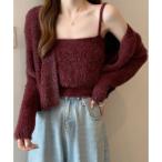 テディショップ Teddyshop レディース アンサンブルリブシャギーニットカーディガン+スクエアキャミソール 2点セット (バーガンディー)