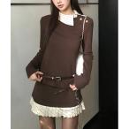 ニット セーター カラーシャギーニットアンサンブル レディース