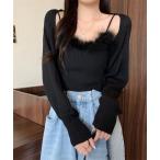 アンサンブル フロント ドロスト 長袖 ショート トップス キャミソール 2点セット