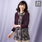 アンサンブル カーディガン レディース おしゃれ 秋冬 ミセス シニア ファッション 40代 50代 60代 70代 80代 プリントチュニックカットソーアンサンブル
