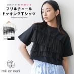 フリルチュールドッキングTシャツ フロント3段チュール 綿100% ドッキングT ショート丈 レディース トップス 半袖T(郵2)ポイント消化