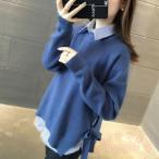 レディース重ね着風チュニック長袖ニットシャツゆったりレイヤードアンサンブルおしゃれゆるシルエットKNK(株)重ね着風でこなれ感たっぷりのゆったりチュニック