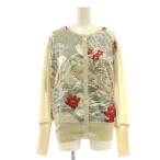 サルヴァトーレフェラガモ アンサンブルニット セーター カーディガン 半袖 長袖 花柄 シルク ウール 切替 L マルチカラー グレー 白