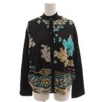レオナール LEONARD FASHION アンサンブル ニット カーディガン 半袖 ハイネック 花柄 シルク混 LL 黒 ブラック /FF レディース