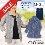 【期間限定セール】【レディースファッション】【トップス】《M・L・LL・3Lサイズ》よろけストライプブラウスアンサンブル2点セット ST2241-80253 レディースファッション レディース ファッション アンサンブル ブラウス タンクトップ 綿混