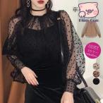 アンサンブル ドットチュールフレアスリーブブラウス×天竺キャミソールアンサンブル