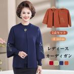 【2点セット】婦人 アンサンブル 高齢者 女性 レディース ニット セーター カーディガン ブラウス 花柄 刺繍 前開き シニア 婦人服 ジャケット リブニット