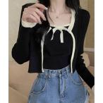 カーディガン バイカラー ニット アンサンブル レディース