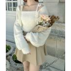 カーディガン リボンニットキャミ + ニットカーディガン アンサンブル 2点セット レディース