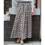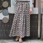 イカットレオパードプリントロングスカート /ロングスカート 春 夏 イカット かすれ模様 ストライプ ブルー カーキ ブラウン フレアスカート ウエストゴム 裏地付き 総柄 幾何学柄 幾何学模様 ボトムス レディース エスニック チチカカ TITICACA