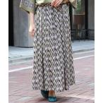 イカットレオパードプリントロングスカート /ロングスカート 春 夏 イカット かすれ模様 フレアスカート ウエストゴム 裏地付き 総柄 ボトムス レディース