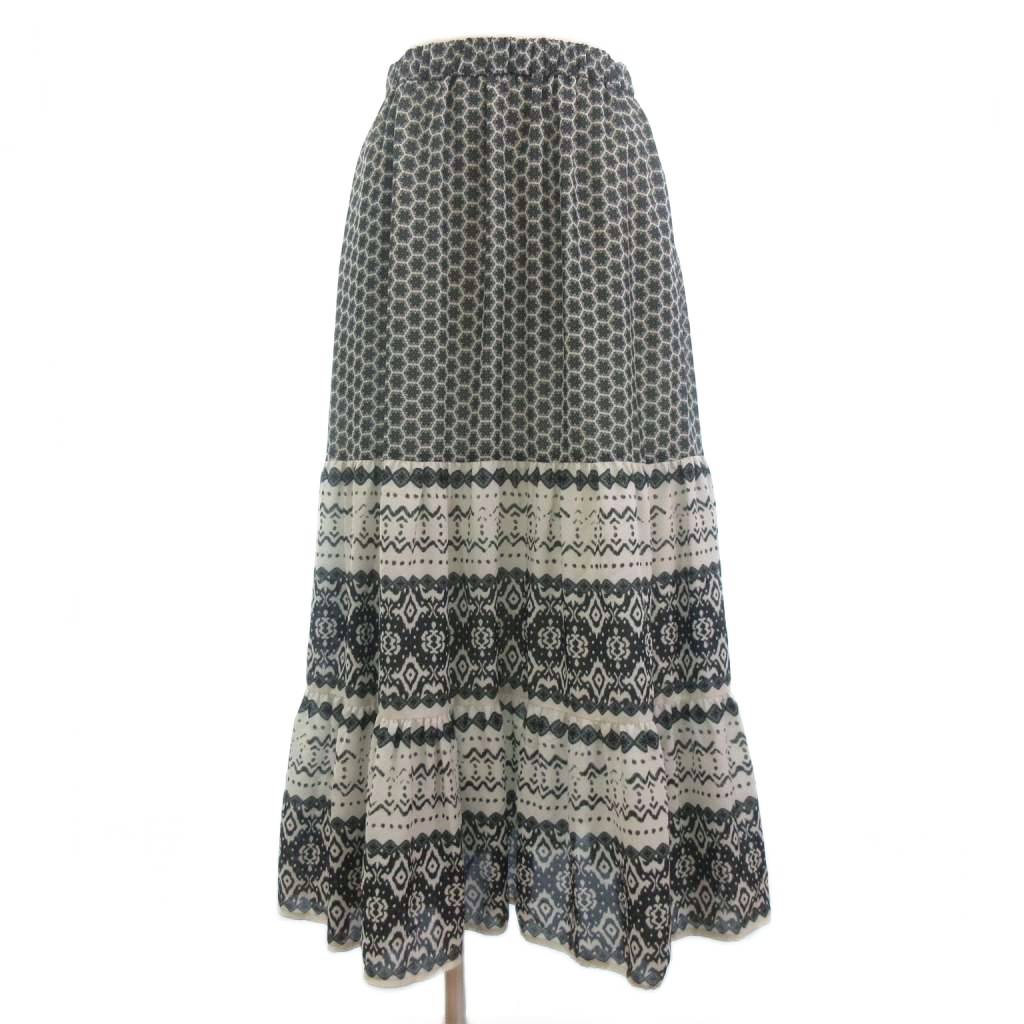 ビーミングバイビームス B:MING LIFE STORE by BEAMS イカットプリント 切替 スカート ロングフレア ギャザー 総柄 M グレー系