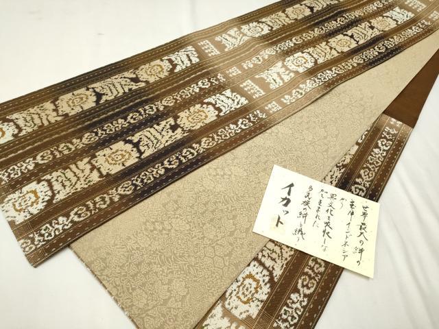 平和屋着物●六通柄袋帯 イカット 花唐草間道 証紙付き 正絹 逸品 CAAV7120hy