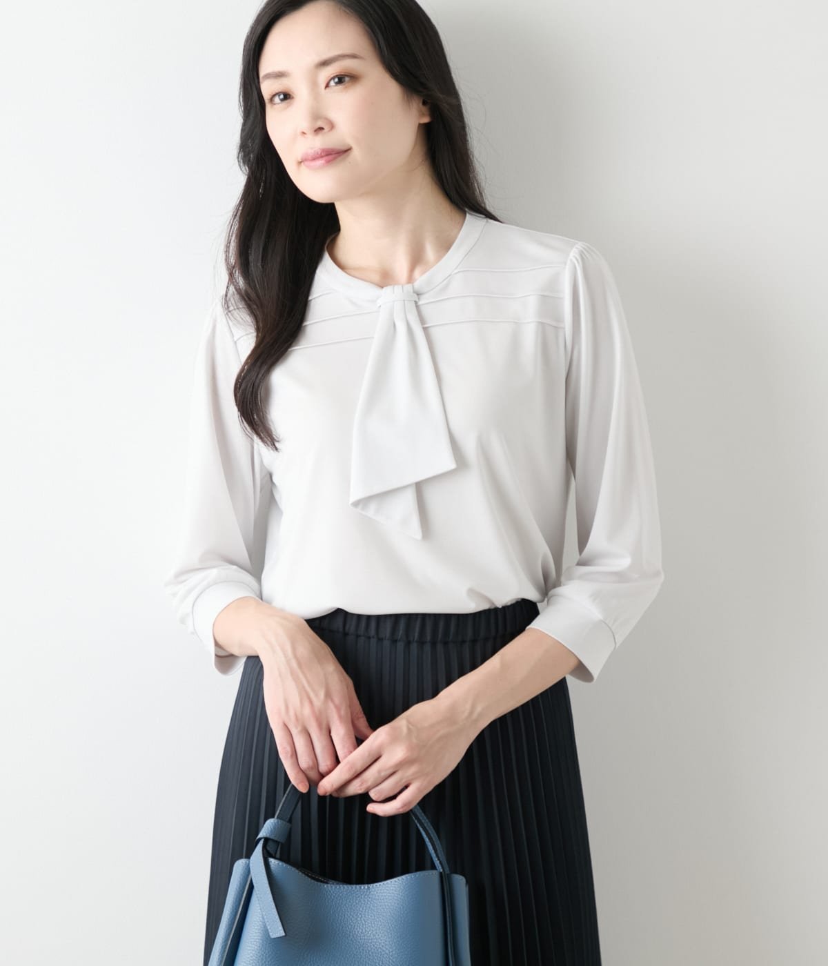 NEWYORKER WOMEN トリアセ強撚スムース 7分袖ボウタイカットソー ニューヨーカー トップス カットソー・Tシャツ ブラック ブルー【送料無料】