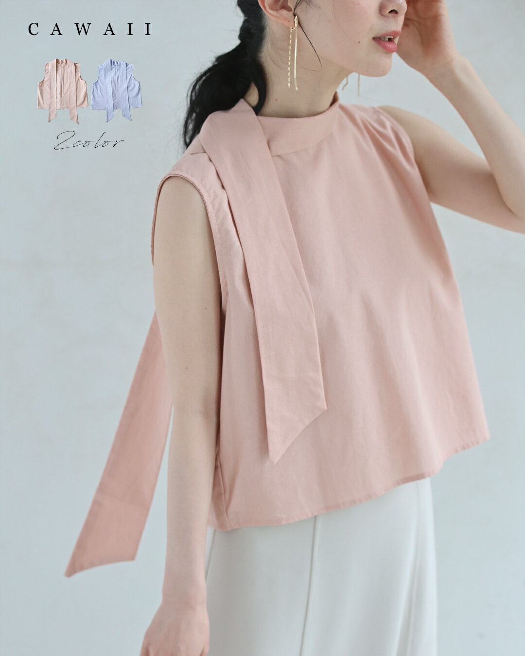 (S~L対応)パステルカラーのネックタイカットソートップス