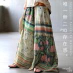 パンツスカート インド綿 レディース 春 夏 秋 涼しい カジュアル ロングスカート 重ね着風 花柄 幾何柄 抽象柄 透け感 アジアン柄 ウエストゴム 綿パンツ