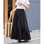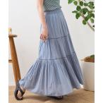 スカート 「洗える/インド綿100%」ふわっと揺れる ティアード刺繍スカート