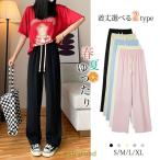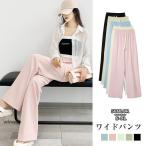 ワイドパンツ レディース ロングパンツ ひんやりパンツ ロング丈 薄手 涼しい ズボン ストレッチ ルームウエア 紐付き 春物 通勤 OL