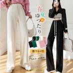 ワイドパンツ 春 夏 秋 レディース ボトムス ボトムス 美シルエット ハイウエスト マキシ丈 マジックテープ 上品 カジュアル 通勤 オフィス ゆったり