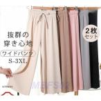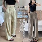 ガウチョパンツ レディース 冷感ワイドパンツ サマー 夏 ストレート ロングパンツ ウエストゴム ボトムス 体型カバー 脚長 ひんやり ゆったり 楽ちん 部屋着