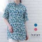 大きいサイズ チュニック レディース 夏 40代 50代 Aライン インド綿 60代 70代 プリント 綿100 ミセス 服 indigo インディゴ 母の日 プレゼント ギフト