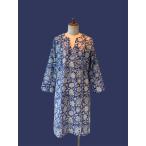 【メール便OK】刺し子風 インド綿 チュニック 草木染め ハンドブロック パッチワーク センタープリーツ