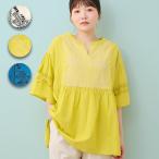 Rico ラクナウ刺繍チュニックプルオーバー / チュニック トップス レディース 春 夏 フレア ふんわり 半端袖 七分袖 手刺しゅう ハンドメイド ボタニカル サスティナブル 綿100% コットン インド綿 ライトベージュ イエロー ブルー エスニック チチカカ TITICACA