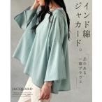 【メール便OK】【アウトレット 訳アリ】ジャカードコットン ドロップショルダー ショート丈 前開きブラウス インド綿 ゆったり 涼しい 無地 大人 ナチュラル