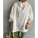 ブラウス シャツ ピンタックインド綿襟付きブラウス レディース