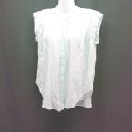 ◇ ne quittezpas インド綿 スタンドカラー ギャザー シアー フレンチスリーブ ブラウス 表記なし グリーン レディース E